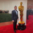 El pastor Rev. Samuel Rodríguez posa junto a la estatua del premio Oscar de la Academia durante la alfombra roja en Los Ángeles, California. | NHCLC / El Mensaje Comunicaciones